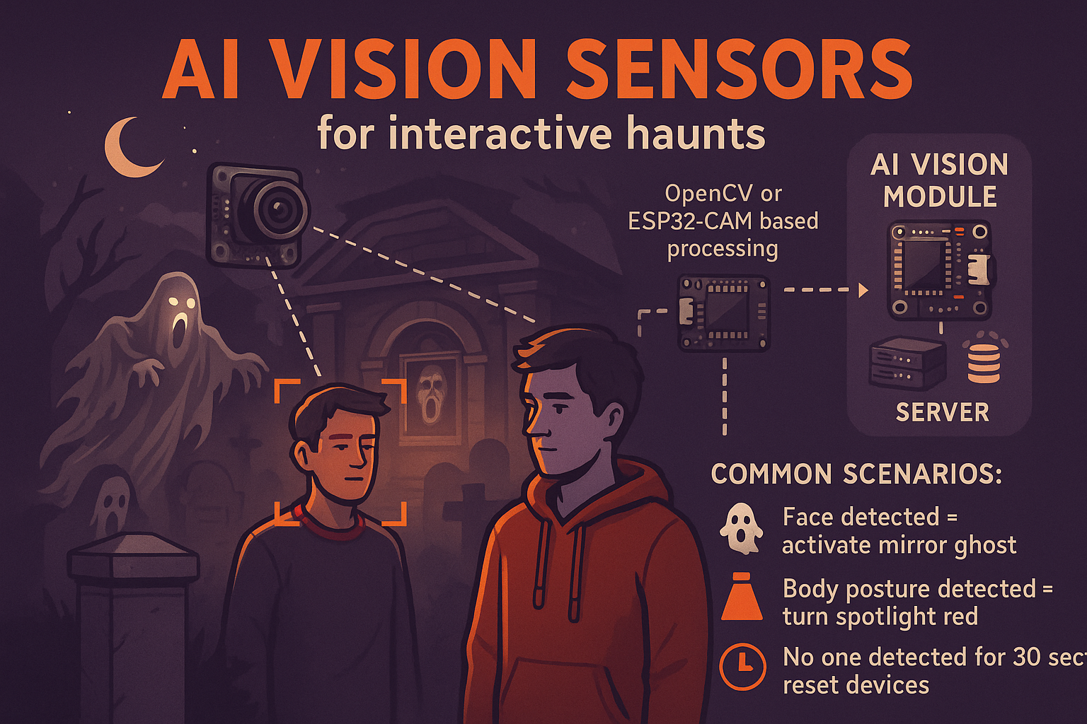 AI vision sensors are the future of interactive haunts. These devices go beyond simple motion detection—they can recognize shapes, faces, even costumes. With an AI camera integrated into your Halloween Portal, you can create more intelligent, targeted effects. Imagine a ghost animatronic that only rises when a guest wearing red enters the zone, or a portrait that only screams when someone walks directly in front of it. Most AI vision modules use OpenCV or ESP32-CAM based processing. The sensor sends data back to your server, where your scripts can interpret triggers based on recognition events. Common scenarios include: - Face detected = activate mirror ghost - Body posture detected = turn spotlight red - No one detected for 30 sec = reset devices Be sure to test in low light. Many AI modules are sensitive to lighting conditions. Use ambient light sources to maintain consistent visibility. Privacy is key. Make it clear that footage is not stored and is only used for in-scene interaction. AI sensors should enhance the experience, not intrude. With vision-based triggers, you add layers of depth to your scenes. It creates a sense that the haunt is aware, watching, and responding uniquely to each visitor.